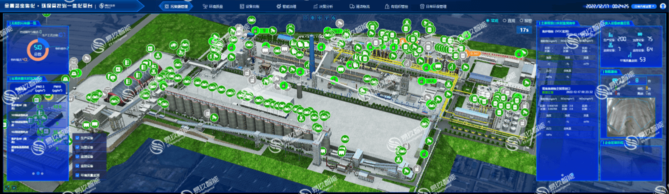 将全厂的有组织和无组织排放源、排放数据、环保与生产设施运行等进行集中管控